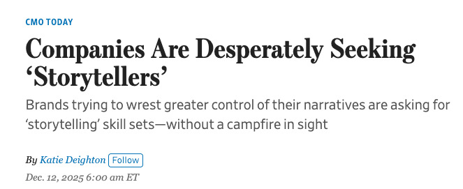 Hey friends, 2026 just started, but so much has already happened. One of the biggest developments has been in AI, where tools like Claude Code and Codex are rapidly changing the landscape of knowledge work. People are seeing how the skills that were once reserved for human minds can be executed in a fraction of the time, at a fraction of the cost. So this begs the question... Is there a creative skill that can still act as a moat for the human mind? Fortunately, the answer is yes, and is nicely embodied in this tweet: While the post uses the word "marketing," any marketer will tell you that their job relies on one thing: Their ability to tell great stories. That's because storytelling can't be condensed into hard, rational computation. It requires an intricate balance of taste, intuition, and style that goes beyond anything a language model can produce on its behalf. This is why Anthropic is paying $400k for a Head of GTM Narrative role. Or why Adobe is paying $200k for an AI Evangelist position. Or why the Wall Street Journal published a piece recently about the hottest job at the moment: I've noticed this myself, where I've been getting more inbound messages about the art of storytelling. People are wondering how to harness this skill, given that it acts as a leverage point for their careers in an uncertain world. I've been publishing stories online for 7 years now (along with a book), and understand what it takes to do it well. With that said, I'm excited to share something with you that acts as a primer to the craft. Allow me to introduce… Story Study. Story Study is a (completely free) 10-day email series on becoming a better storyteller. It takes the core elements of my storytelling process, and distills it into a highly practical and actionable curriculum. The key word here is practical. Instead of showing you diagrams of the Hero’s Journey or walking you through 3-act structures, I’m going to distill the art of storytelling into something applicable. Original frameworks that can be used immediately, regardless of the stories you tell. To do this, I will share 8 lessons and 2 workshops for you to review over the next 10 days. The lessons will communicate the ideas, and the workshops will give you practice time. If you take 5-10 minutes each day to sit with the lessons and do the assignments, I’m confident that you’ll get a ton of value out of this curriculum. 👉 Click here to be automatically enrolled for free.​​ Most of the concepts I’ll cover are from my flagship 4-week course, Thinking In Stories. We’ll only go over a fraction of what I teach there, but it’ll be enough to shift the way you think of storytelling going forward. If you’re interested in the full experience, feel free to a look at the course page to see what you can expect. Enrollment opens next Monday, February 16th, and the course kicks off on March 9th. In the meantime, if you’re ready to get the first lesson of Story Study in your inbox, just click the link below to get started. The whole curriculum is a 4,000+ word, 35-drawing exploration of the craft, divided into a clear and digestible 10-day series. Expect frameworks, examples, and worksheets that will help you bridge the gap between theory and practice. And if you’ve taken this email course before, I recommend you go through it again to solidify these concepts even further. The goal of Story Study is simple: to help you transform your best ideas into even better stories. 👉 Click here and get the first lesson today.​​ Finally, if you’d like to share it with a friend, you can send them to this page. Enjoy, and let me know what you think! A Brief Parting Question What kind of stories are you looking to tell in 2026? Do you want to learn storytelling to publish better articles, to publish a book, to get a new job, to get ahead at your current one, or something else? For me, almost everything in my professional career revolves around storytelling, which makes this a skill that I want to continuously refine. What about you? As always, hit reply to share any thoughts, to respond to the parting question, or to simply say hello. I love hearing from you. And once again, it’d be great to hear your experience with Story Study. To get the first lesson in your inbox, simply click here and enjoy the ride. I’m sure you’ll get a lot out of it. Have a great rest of your week! Happy new year! -Lawrence P.S. Speaking of AI, my friend Khe Hy recently released a course on Claude Code called Unfair Advantage. Whenever I have questions about AI, I go to Khe because he always has a clear (and fun) way of communicating it. His curiosity keeps him at the edge of what's happening with AI, and his ability to communicate it is what makes him such an effective teacher. |
